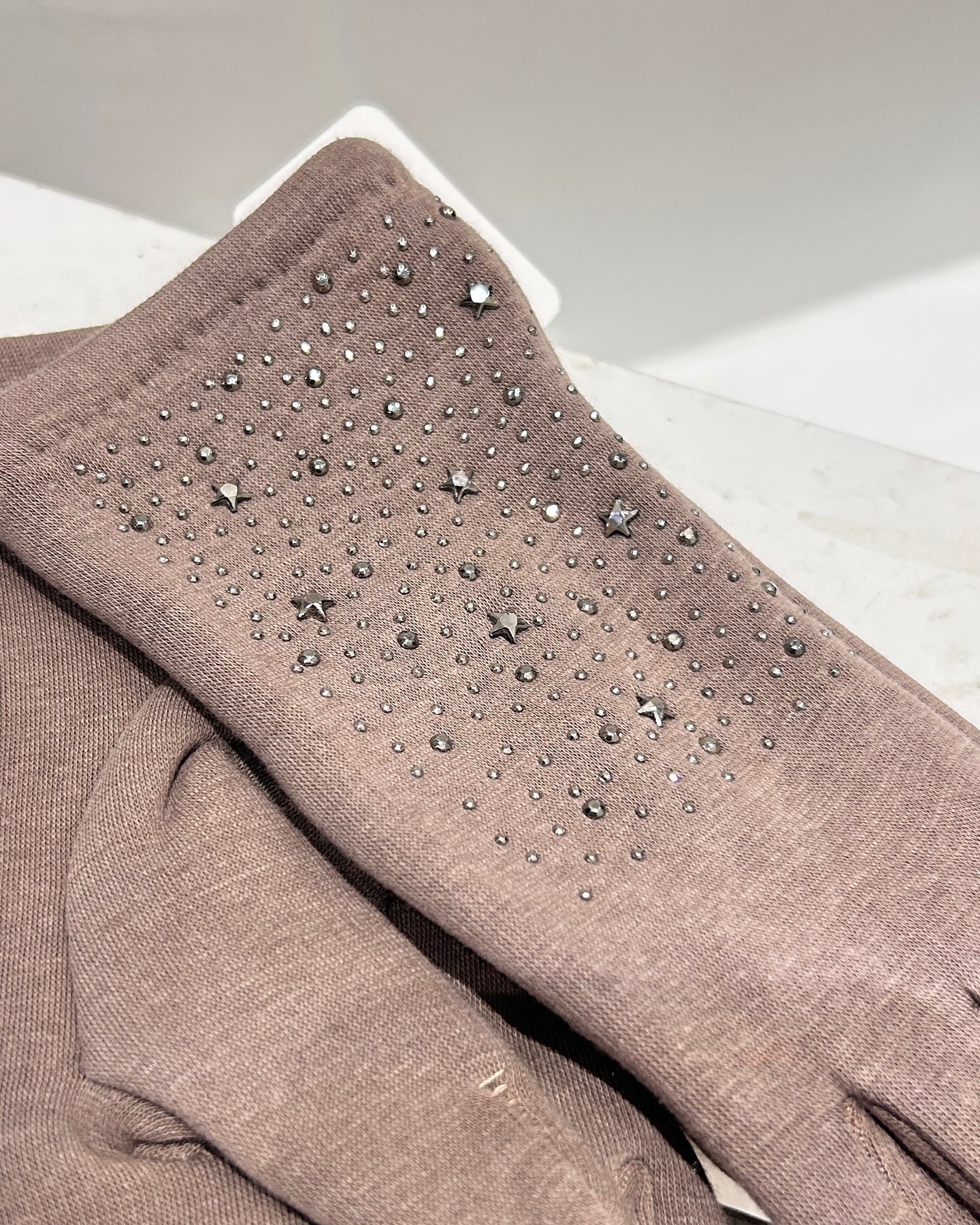 • Taupe gloves with embellished star detail