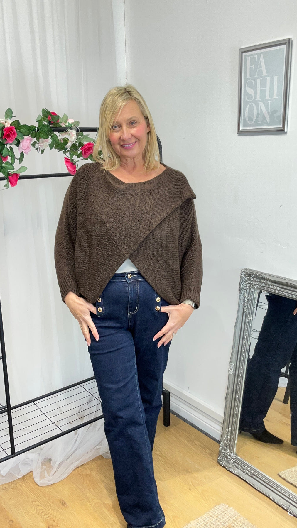 Regular price £34.00- Carrie crossover jumper in chocolate