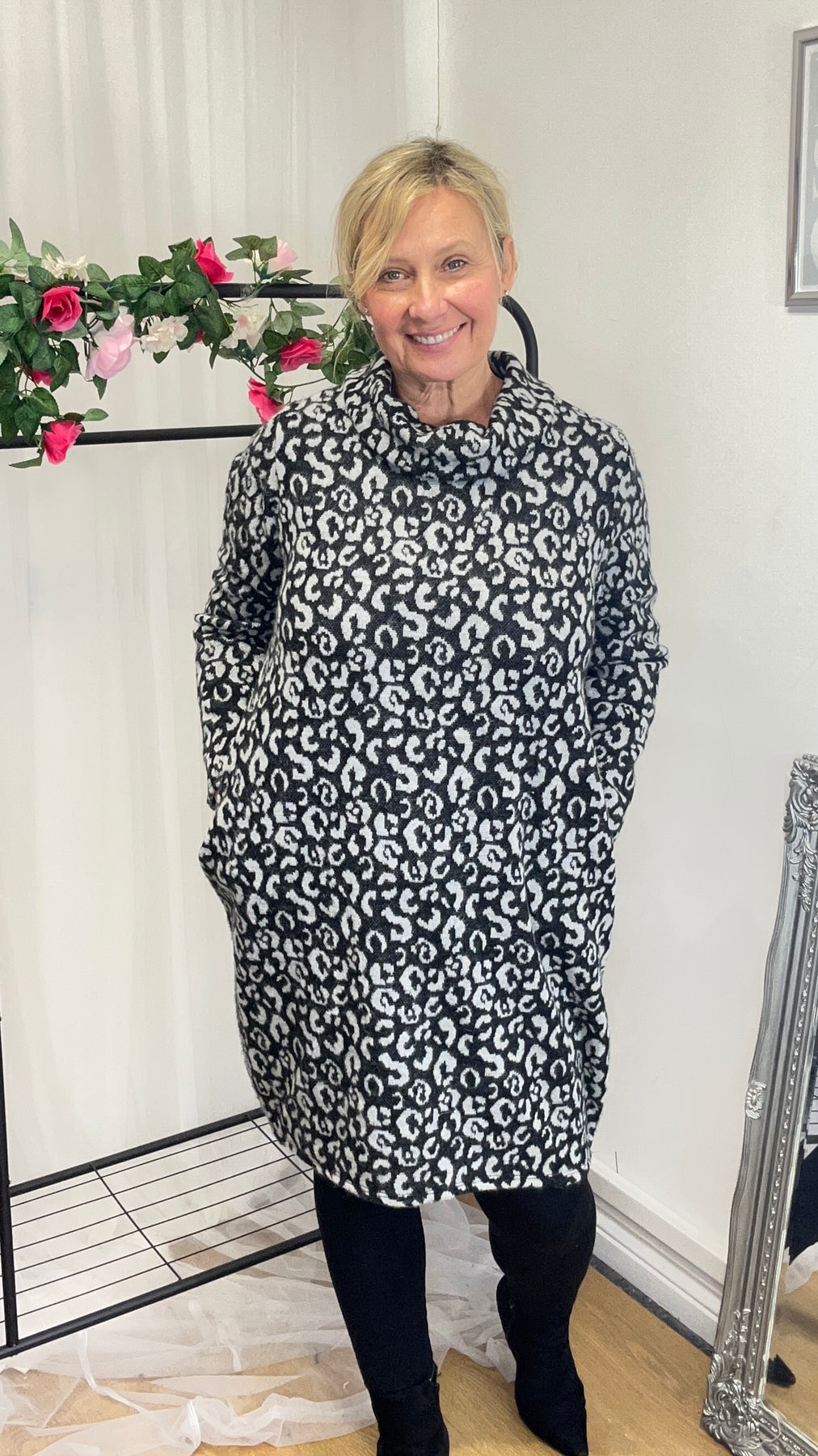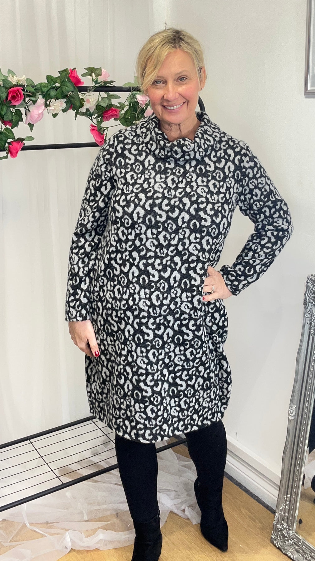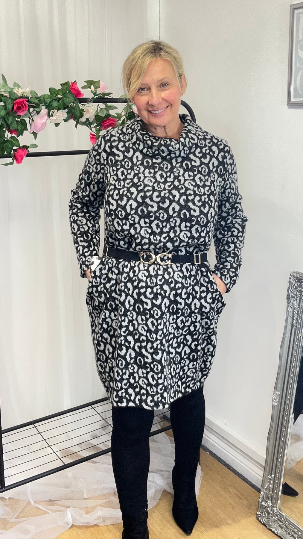 Gail Jumper Dress - grey animal