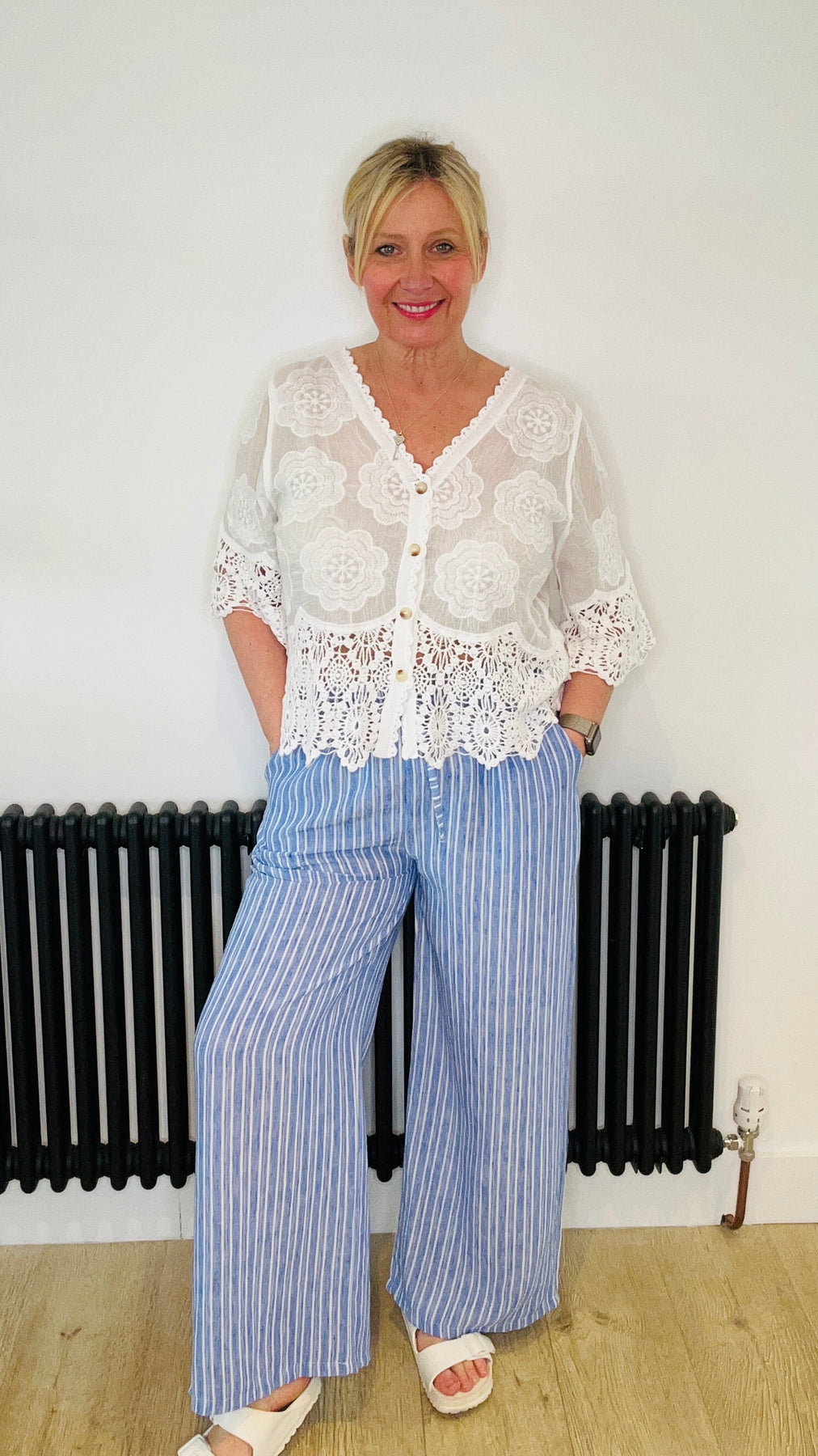 Gretal Pinstripe Trousers - Blue