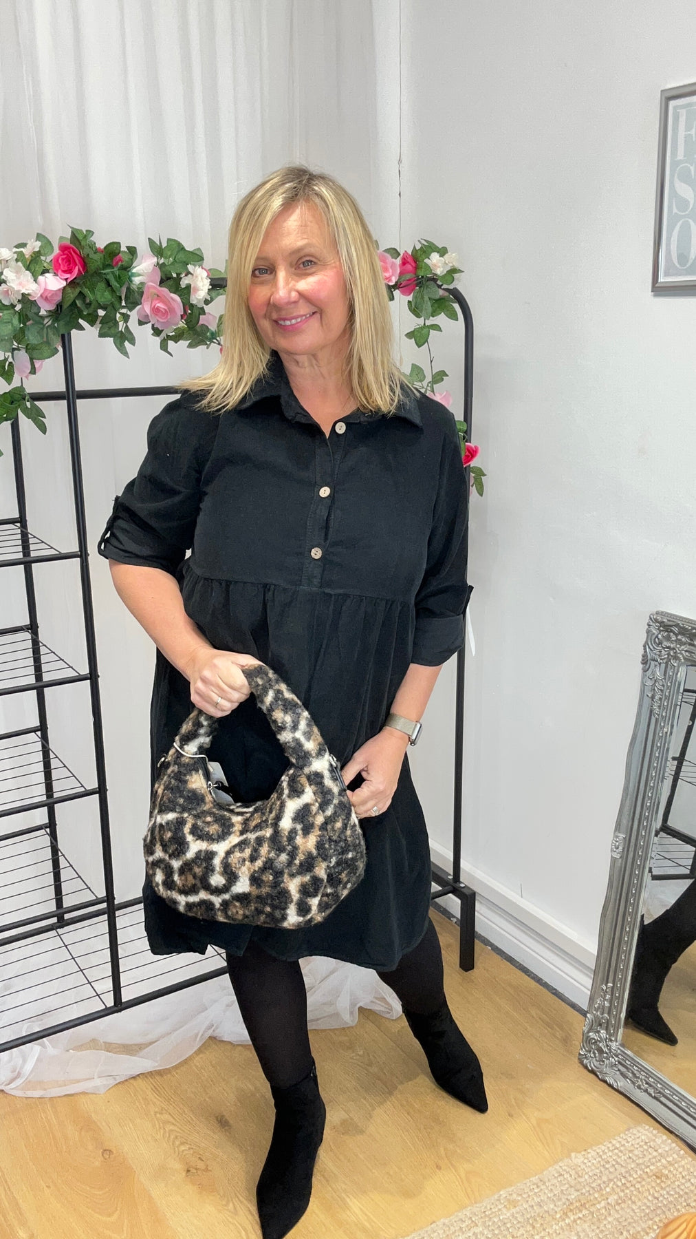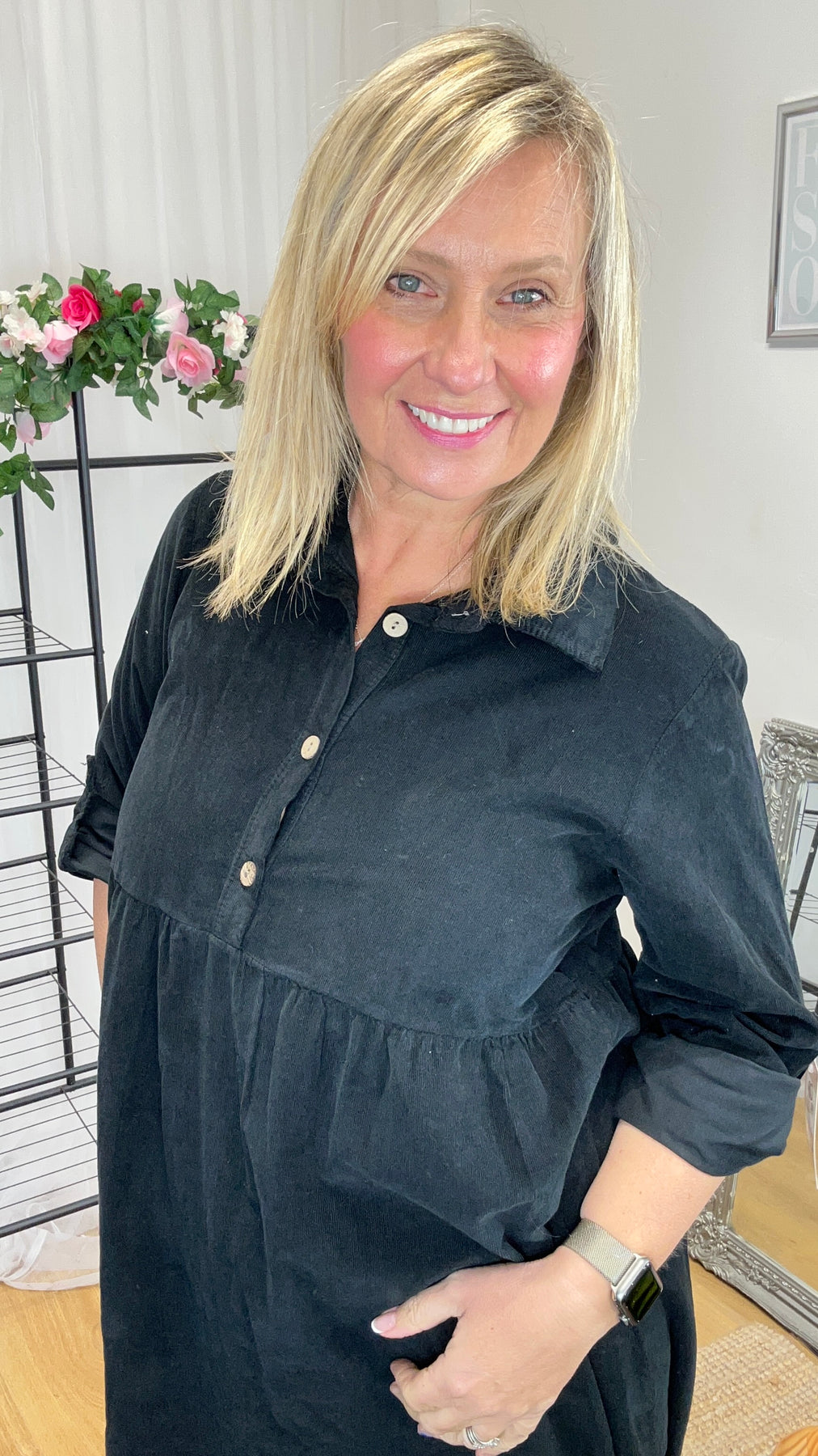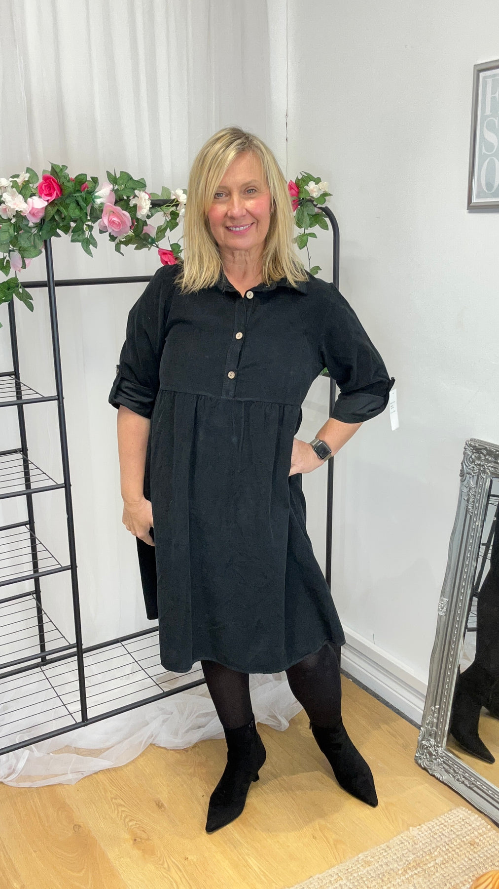 Regular price £32.00- On trend, Beth Cord Dress in black