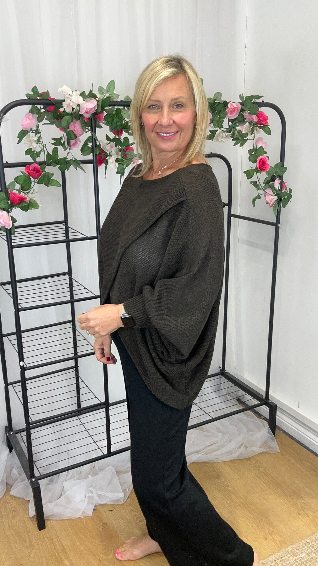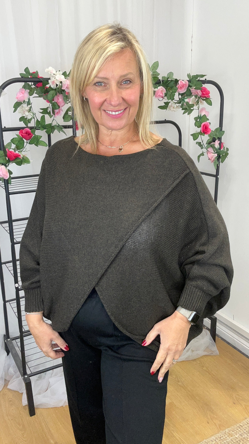 Regular price £28.00- Perfect versatile piece, Chloe Wrap Jumper in chocolate