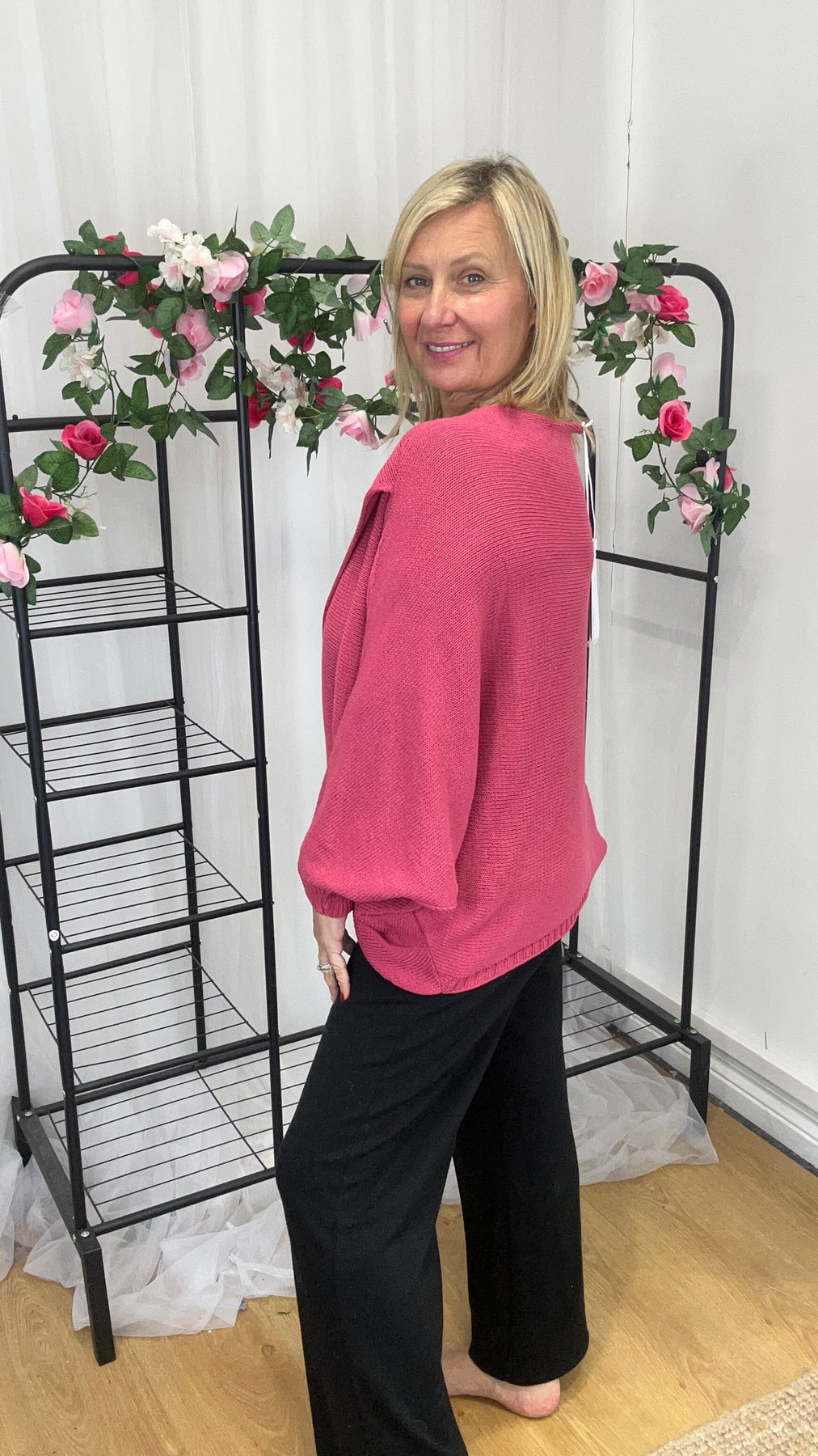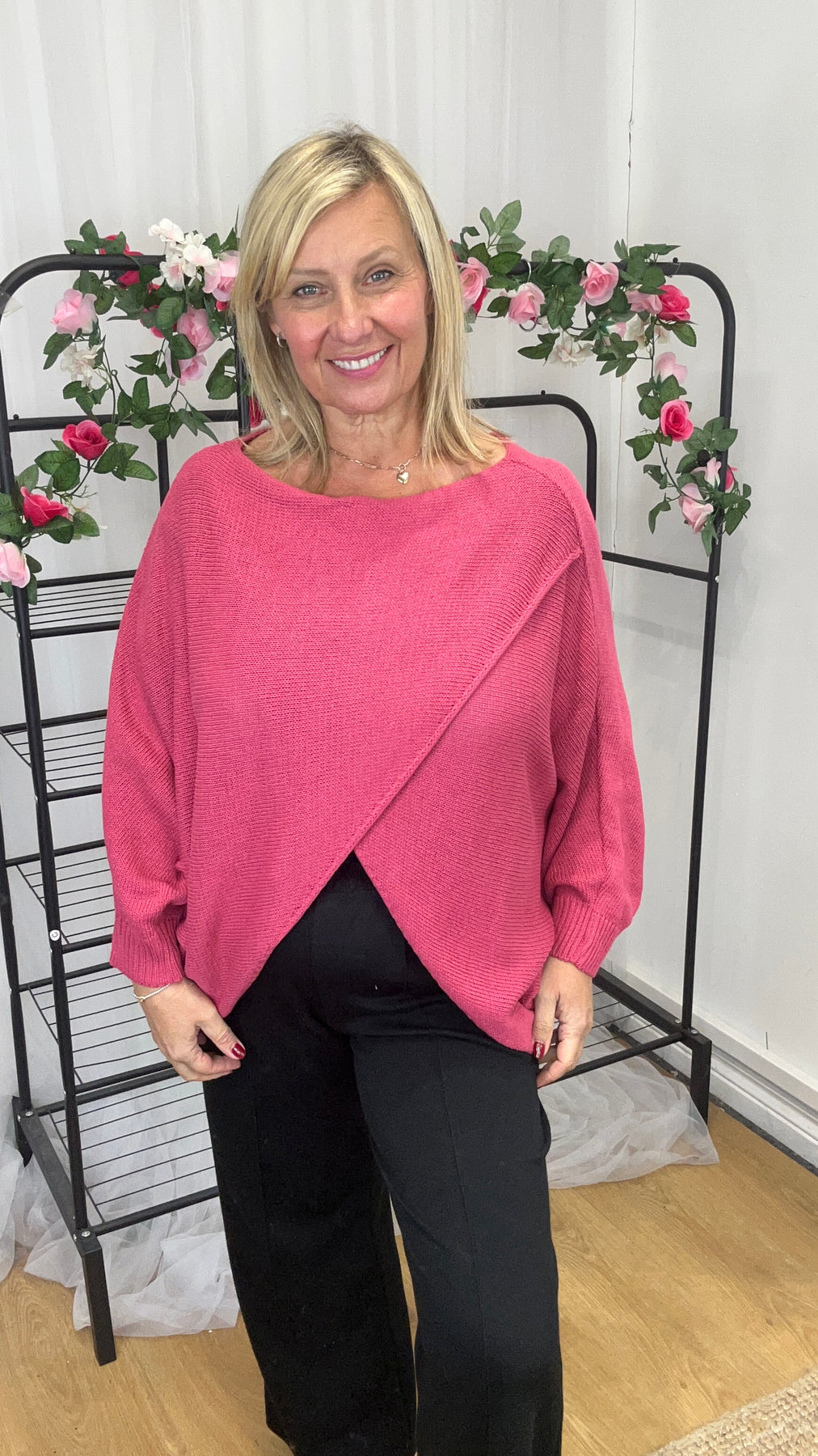 Regular price £28.00- Perfect versatile piece, Chloe Wrap Jumper in raspberry