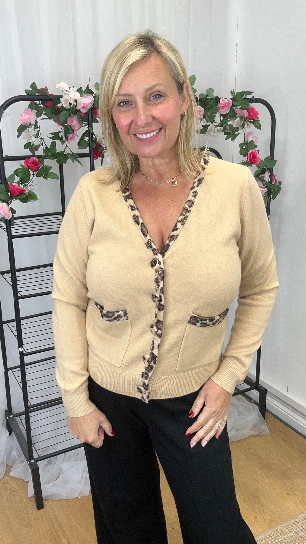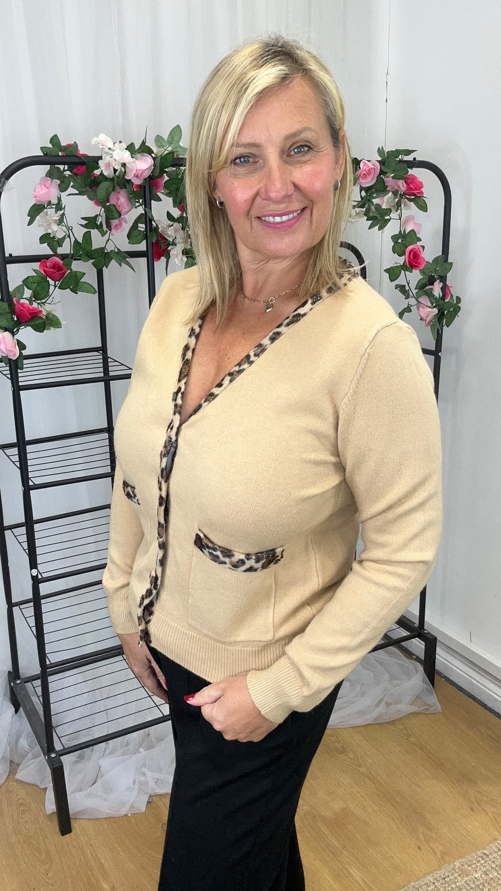 Regular price £30.00- Super soft Lana animal edged cardigan in camel