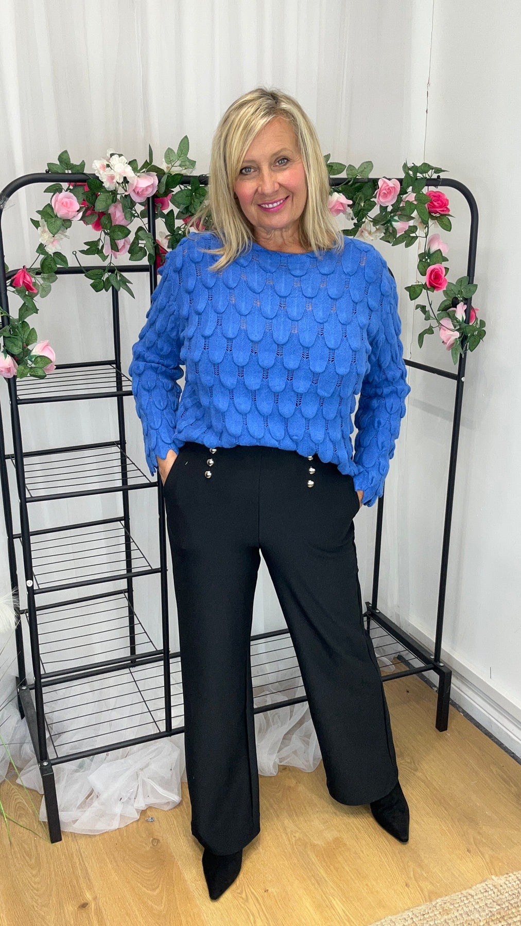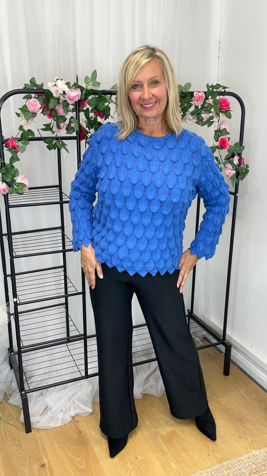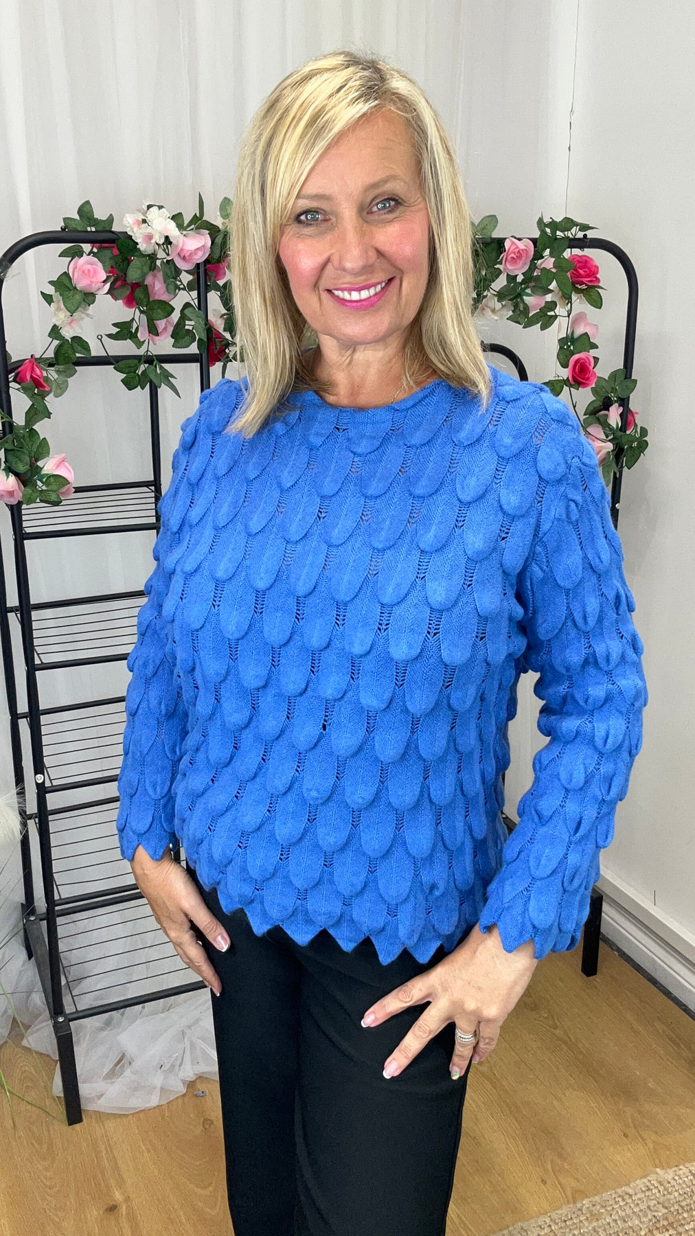 Regular price £33.00- Statement Lisa scalloped jumper in blue