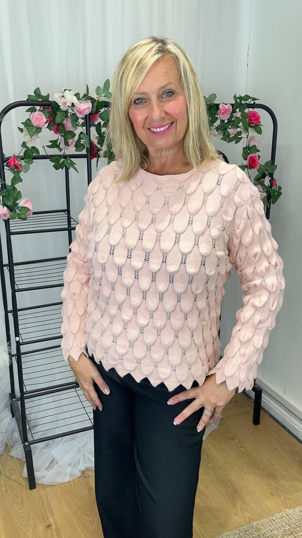 Regular price £33.00- Statement Lisa scalloped jumper in pink
