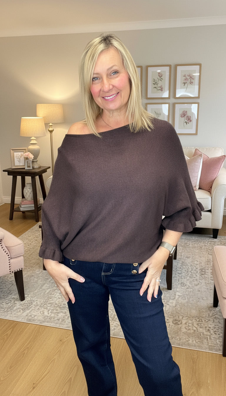 Vicky Fluted Sleeve Jumper - chocolate