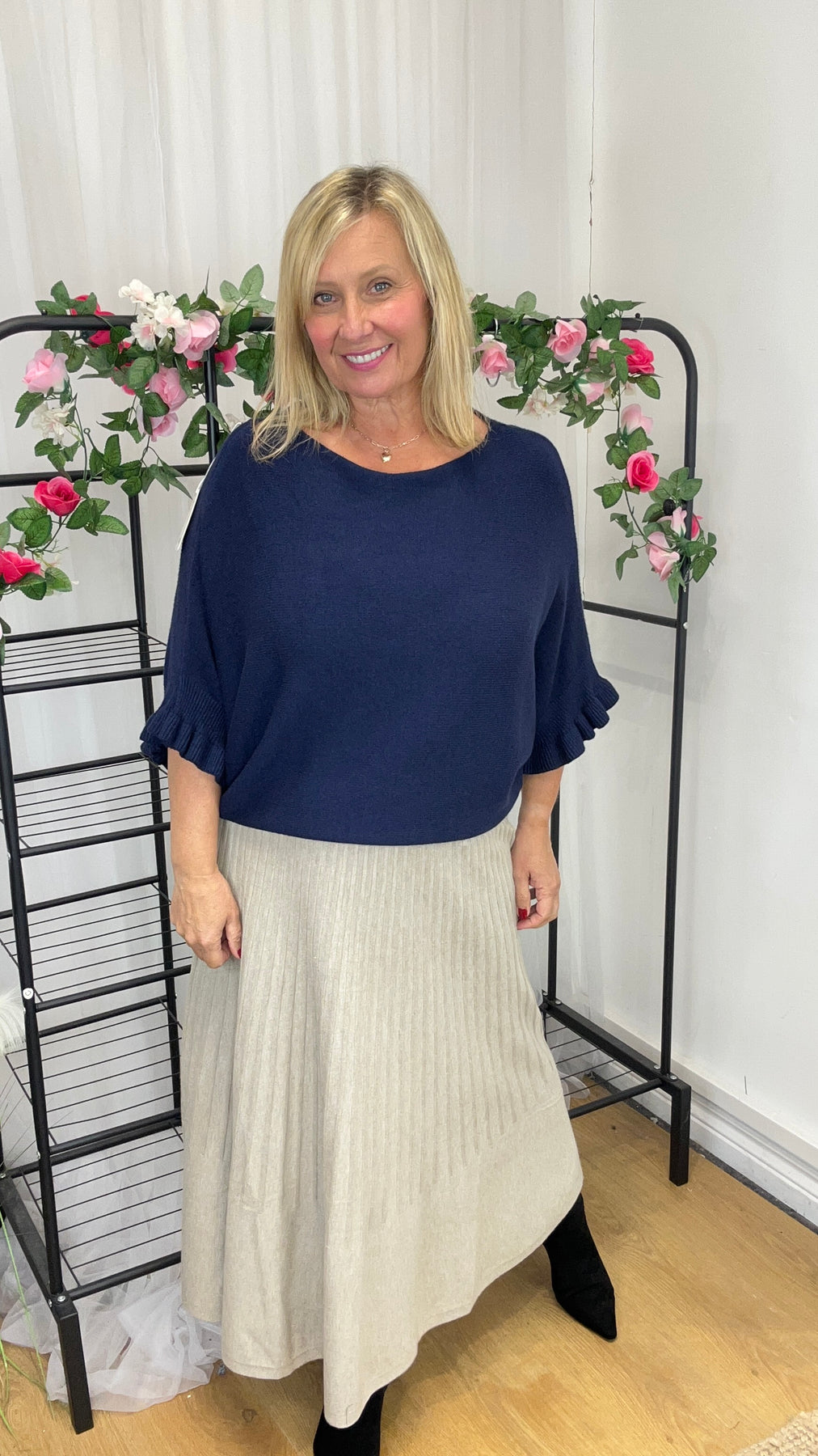 Regular price £25.00- Striking Vicky fluted sleeve jumper in Navy
