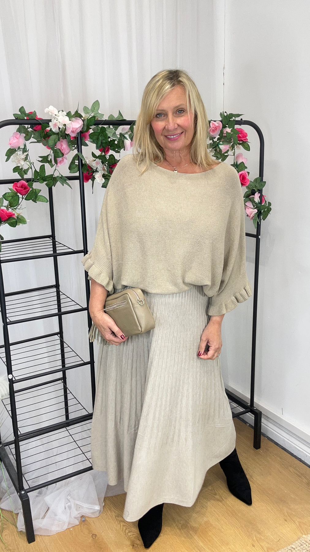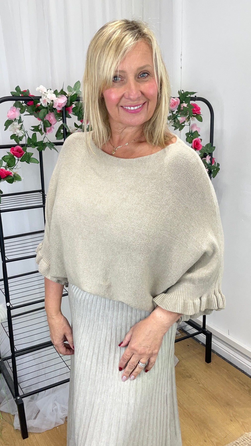 Regular price £25.00- Striking Vicky fluted sleeve jumper in Oatmeal