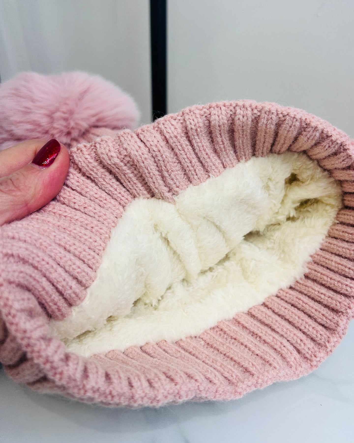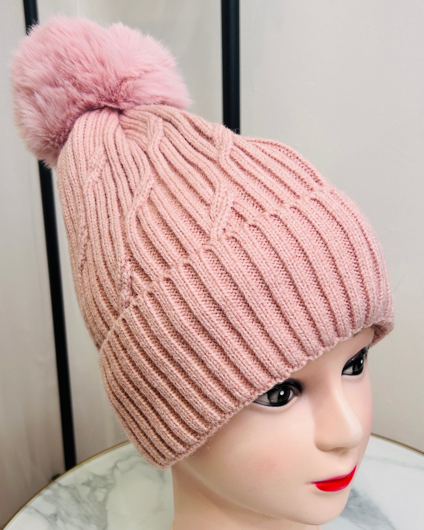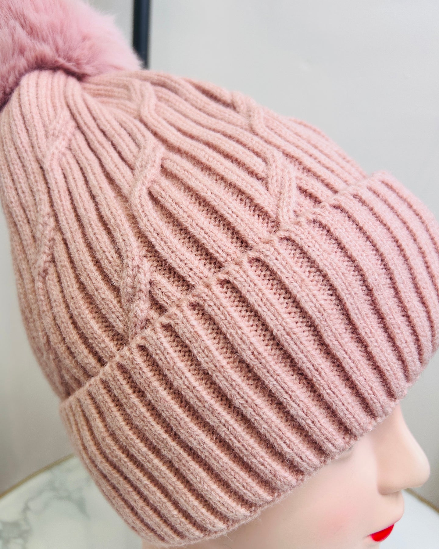 •  Cable Knit Pom Pom hat in pink