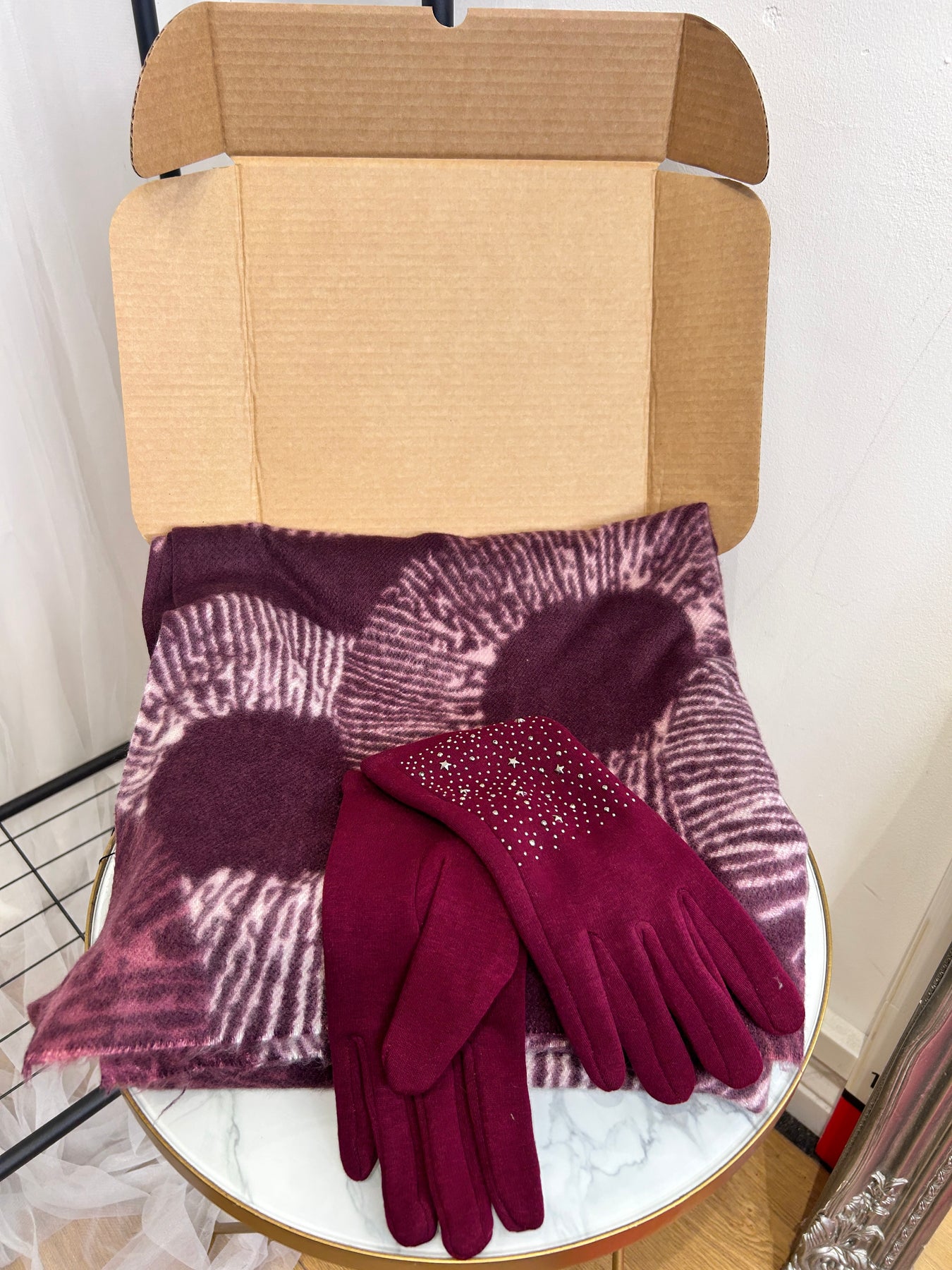 Gift Set - berry scarf & sparkle star gloves
