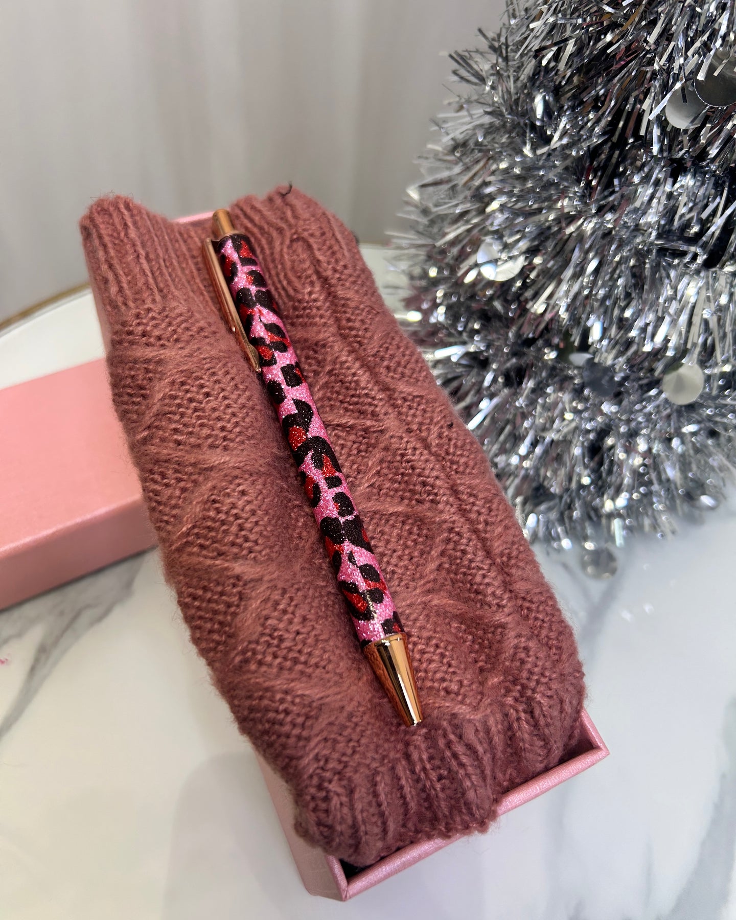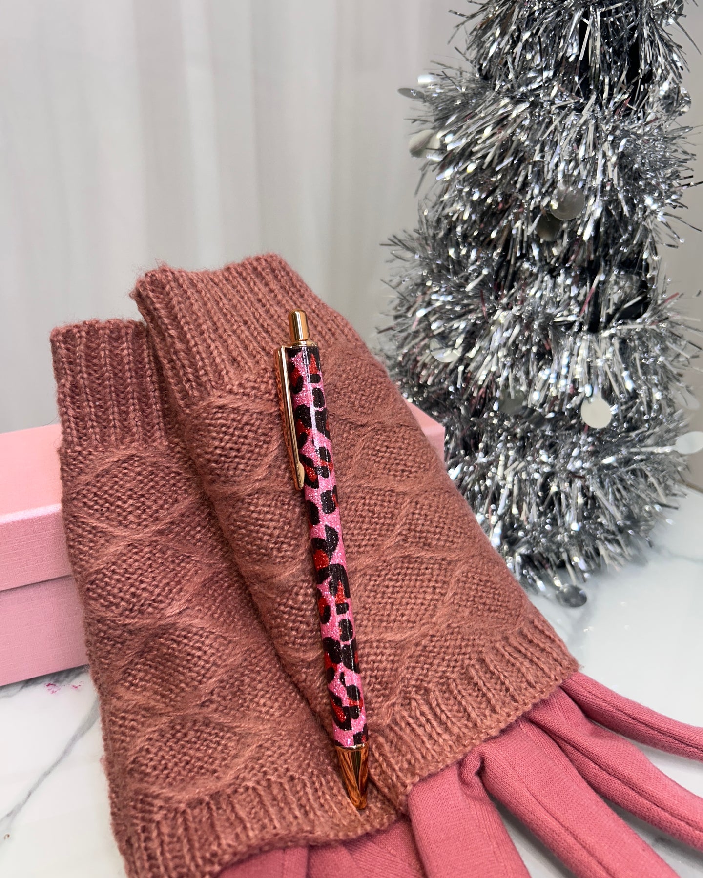 Regular price £16.00- Cosy Pink Handwarmer Gloves and Pink Animal Print Shimmer Pen