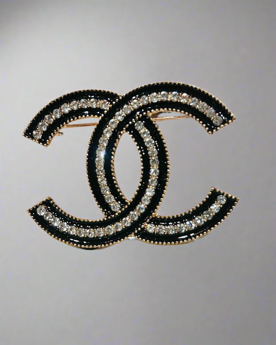 Cc Brooch Diamanté Black