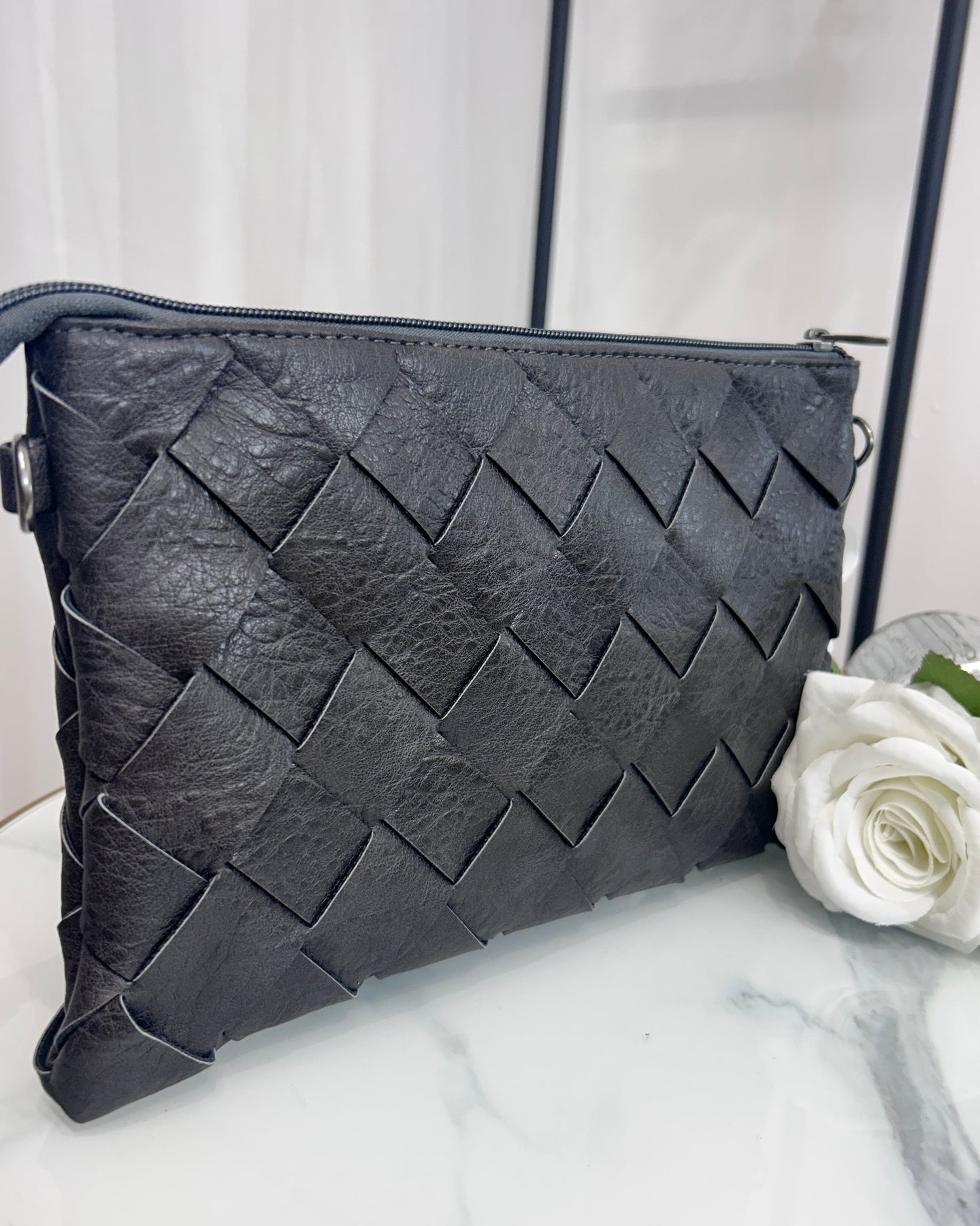 Regular price £19.00- Stylish Leah Weave Bag in charcoal