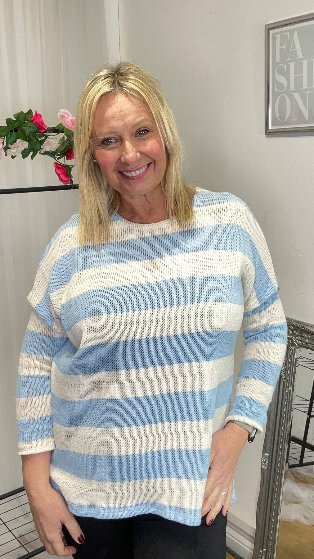 Regular price £24.00- Ellie striped knit in blue & cream