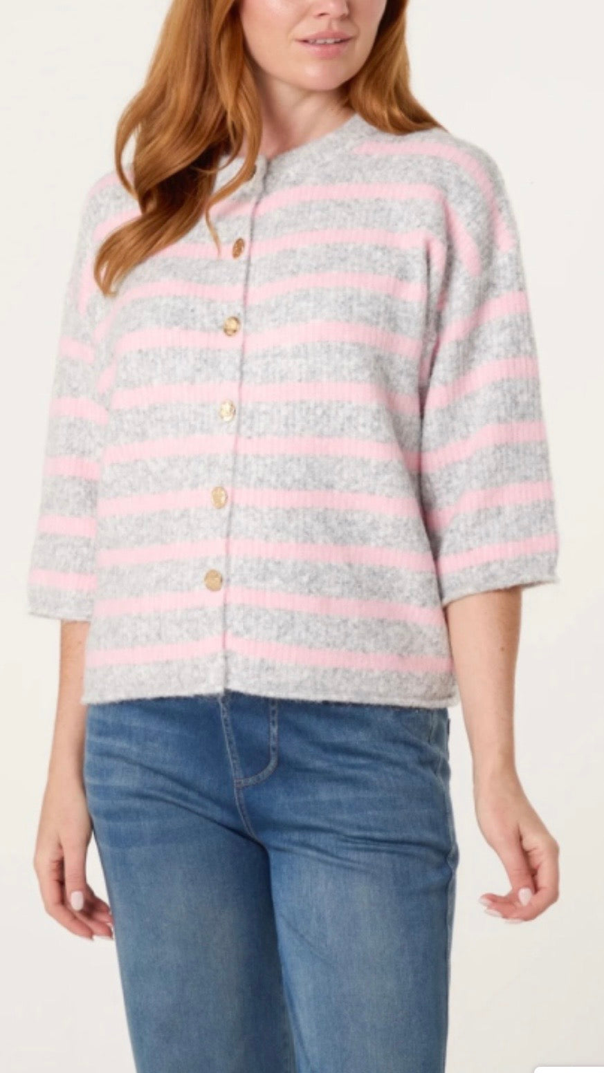 • Gorgeous candy pink and dusky grey horizontal stripes