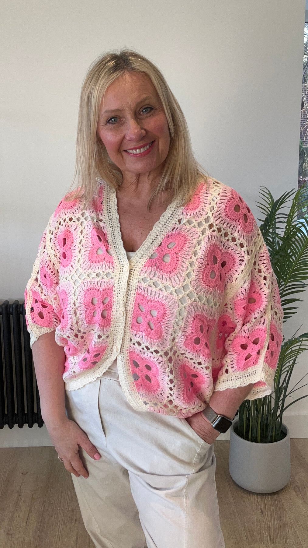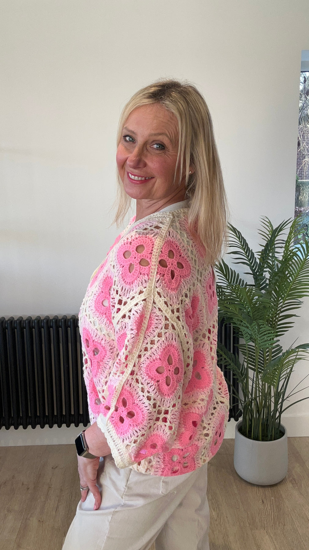Fiona Crochet Cardigan - Pink