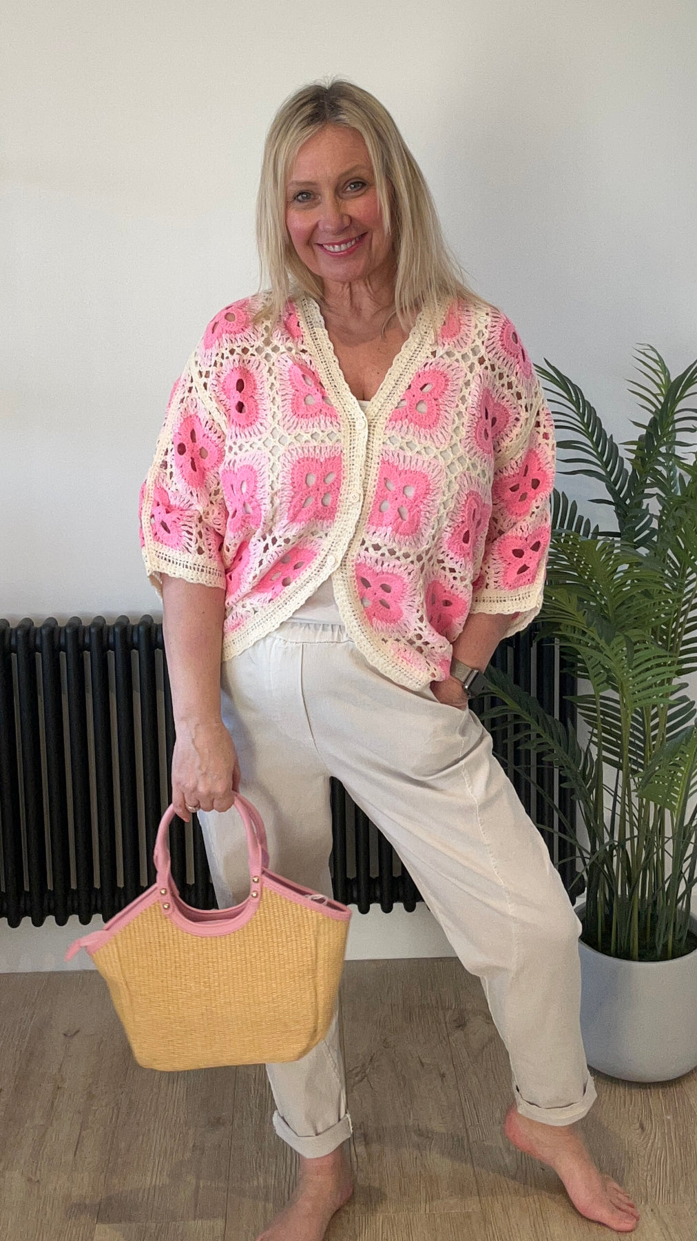 • Cream crochet with pink
