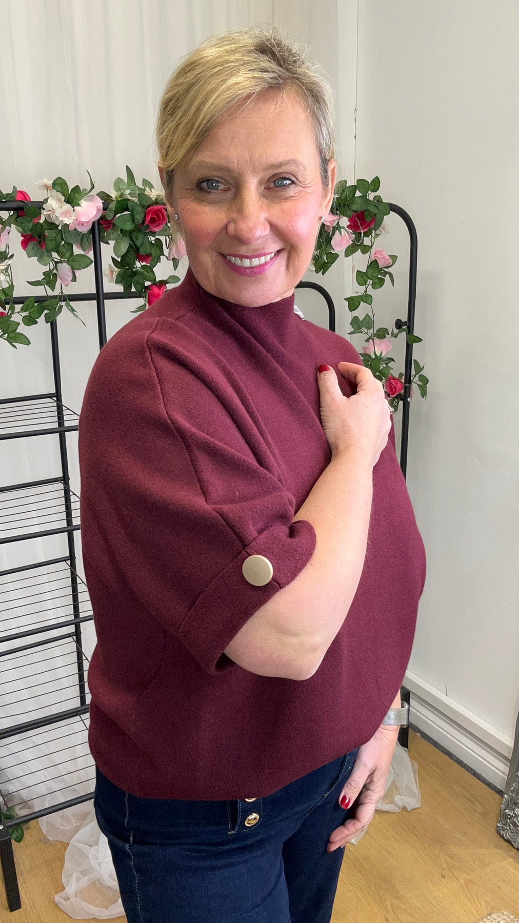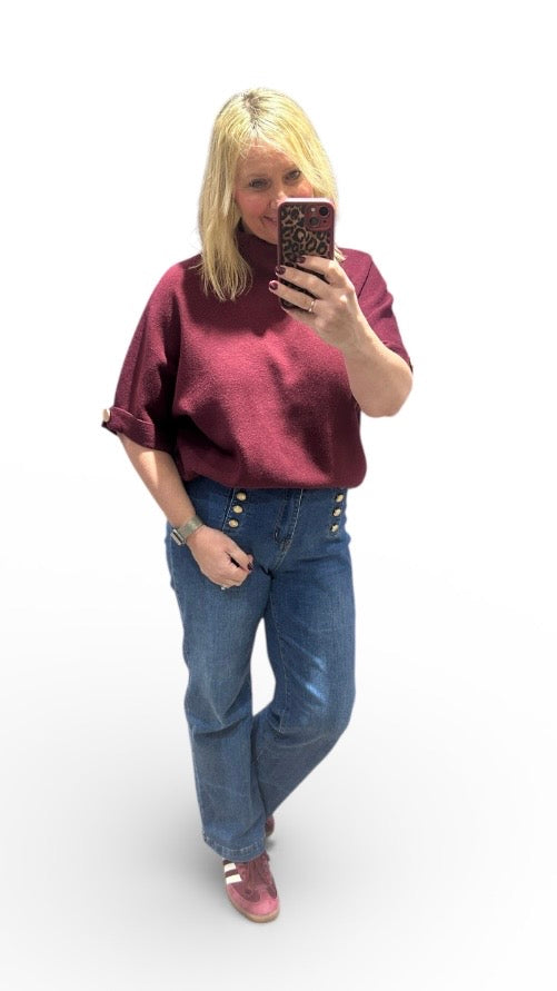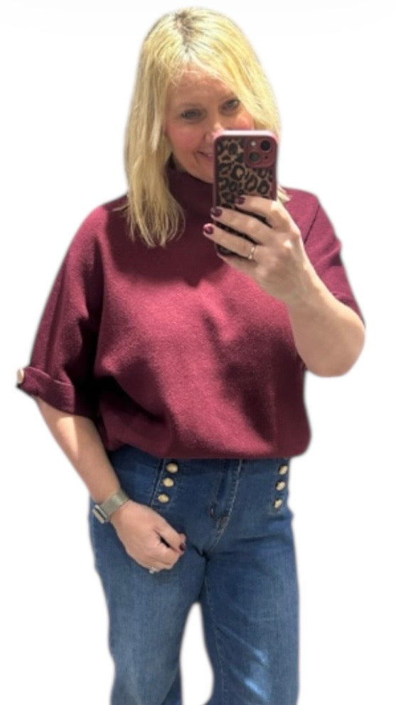 Regular price £24.00- Super soft Ivy Short-Sleeved Knit in wine