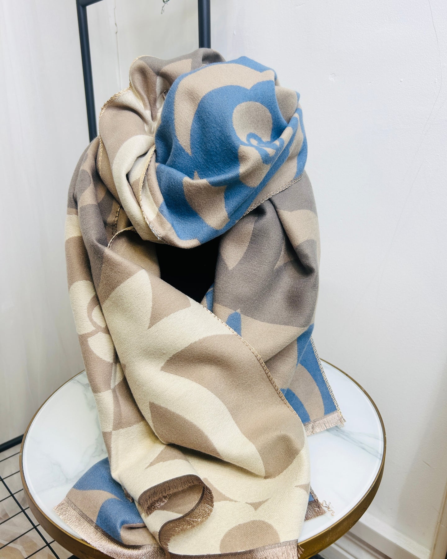 Regular price £14.00- Reversible Scarf in taupe and denim blue