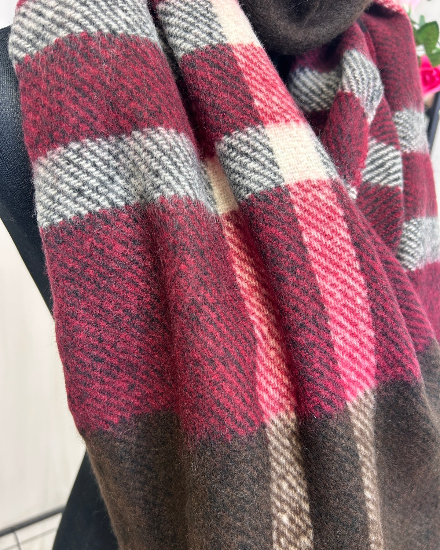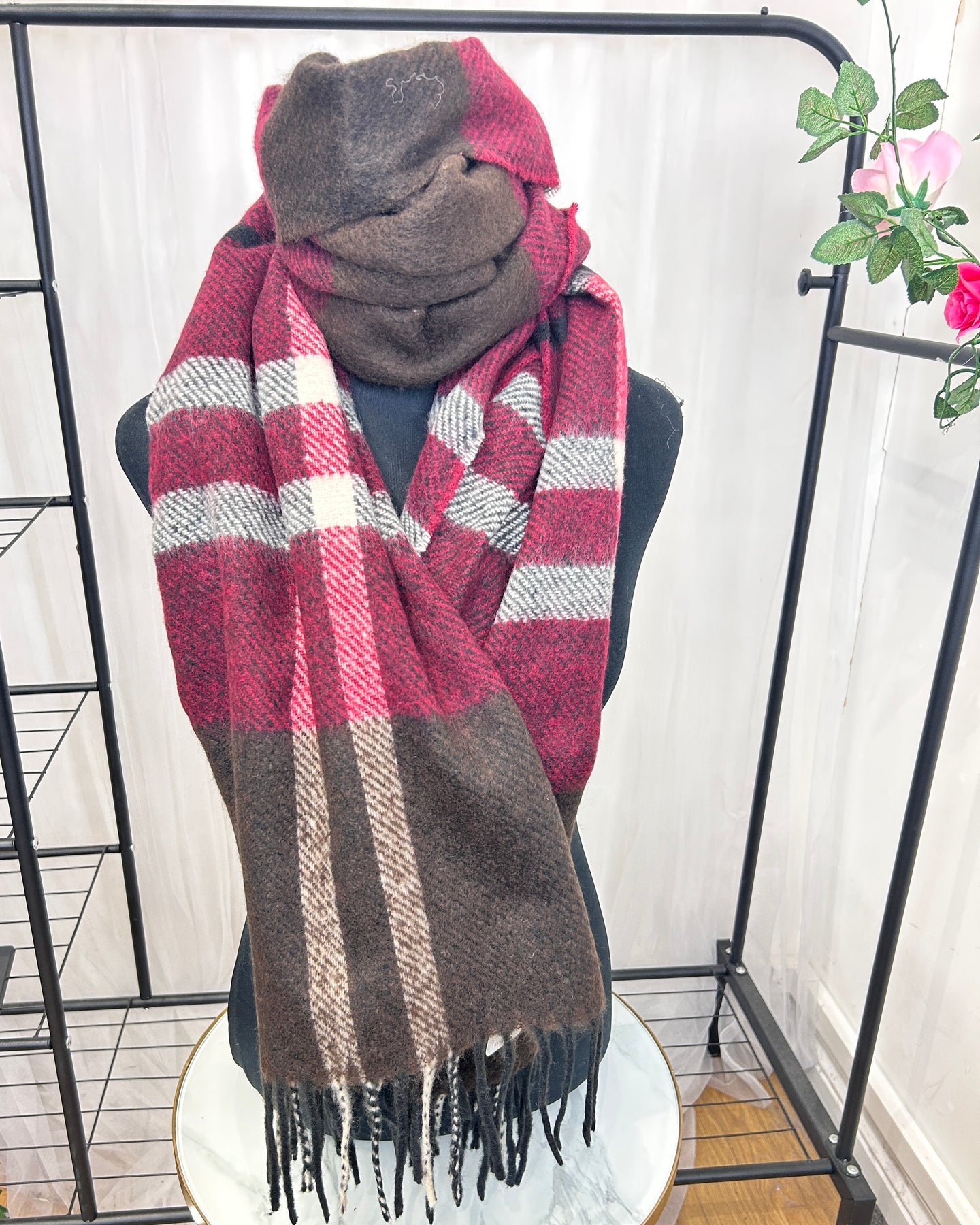 • Beautifully soft scarf in burgundy, chocolate, cream and black