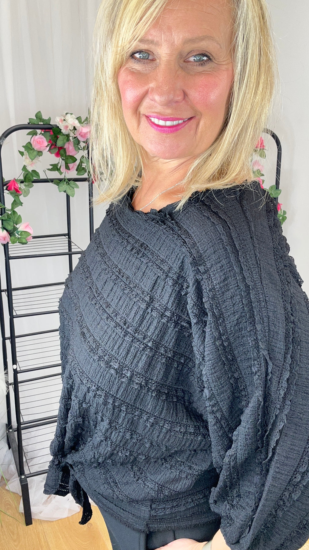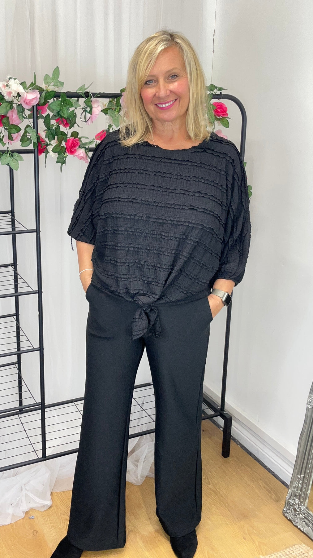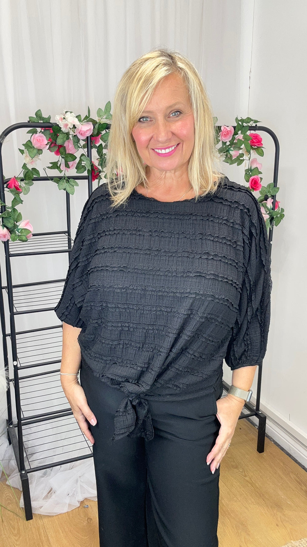 Regular price £24.00- Stylish Elouise ruffle tie top in black