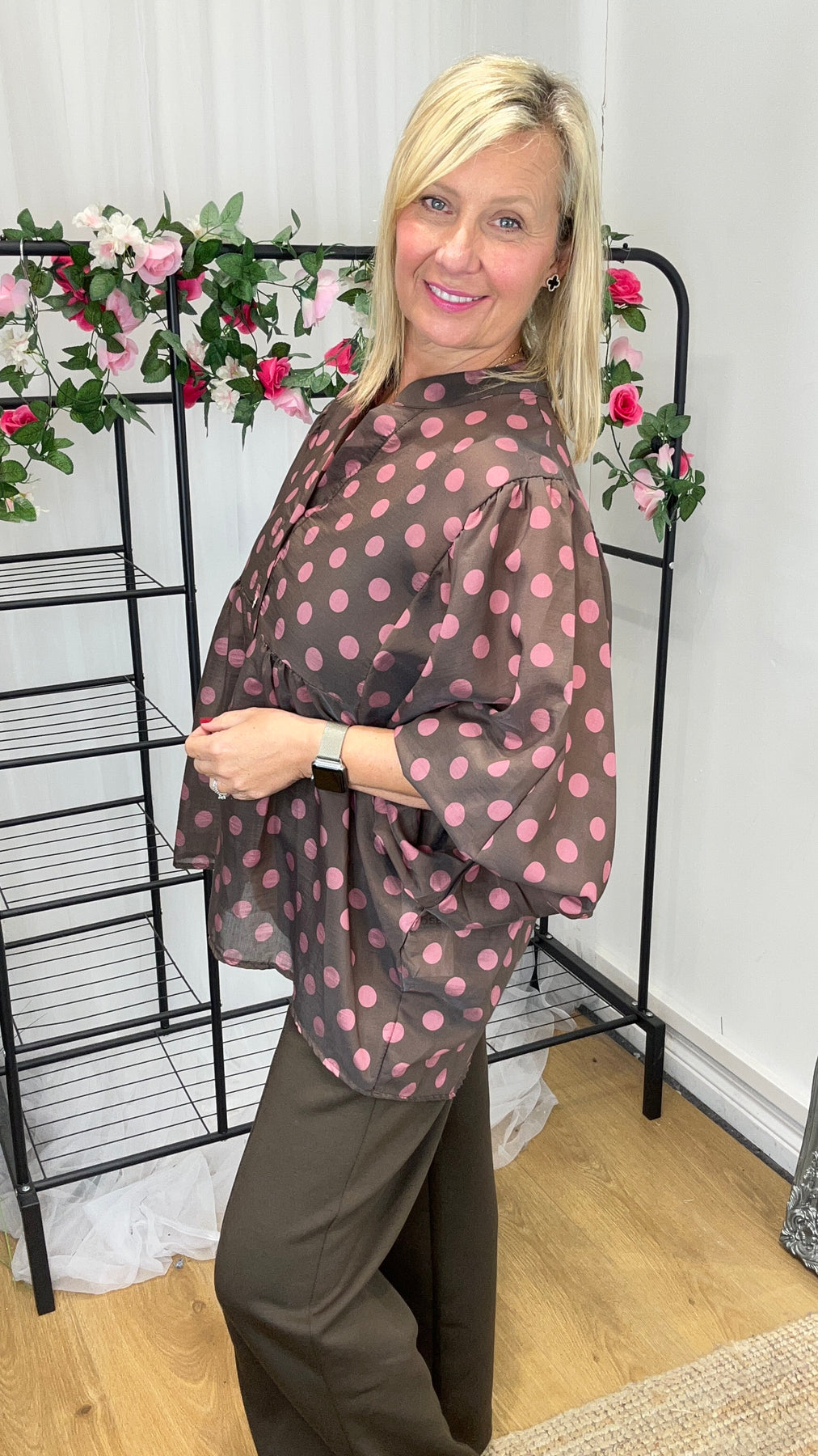 Jenna Spotty Blouse - Chocolate