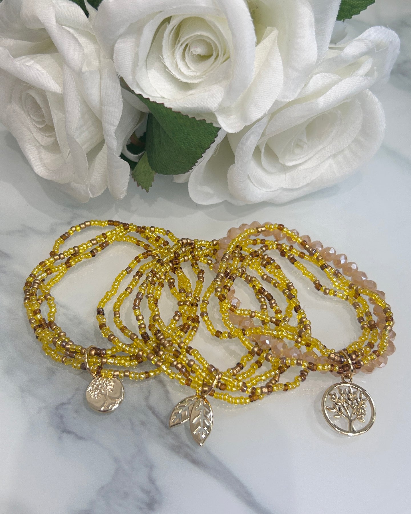 Regular price £8.00- Gorgeous set of three Elasticated bracelets each with a different charm.