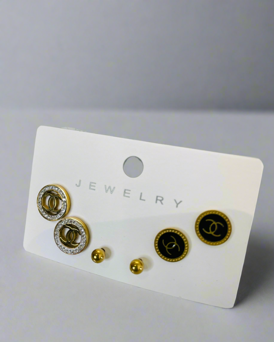 Regular price £12.00- Inspired stylish CC stud earrings in a set of 3