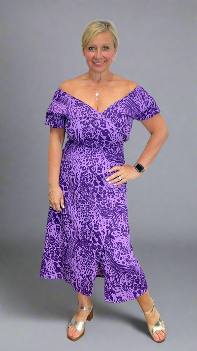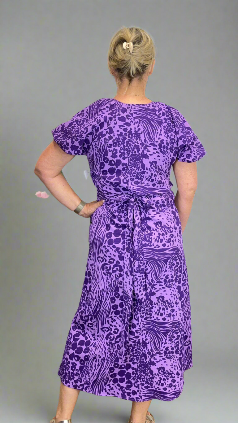 Regular price £39.00 Sale price £10.00 Save £29.00- Striking Gabriella Animal Wrap Midi Dress
